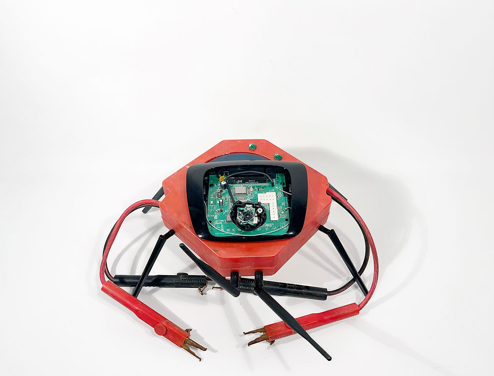 Booster cable pack, wireless router, wifi antennas (8), webcam, monopoly houses (2), epoxy.